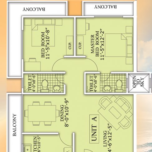 | Floor | Unit A 950 Sqft | Unit B 1280 Sqft | Unit C 1320 Sqft | Unit D 930 Sqft |