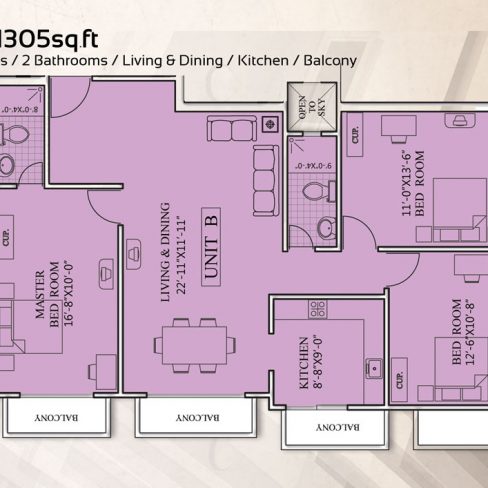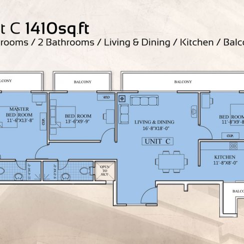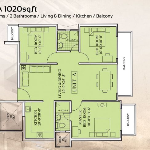 FLOOR – Imported tiles in living and dining rooms, non slippery tiles in bathrooms, Heavy duty ceramic tiles in the common area